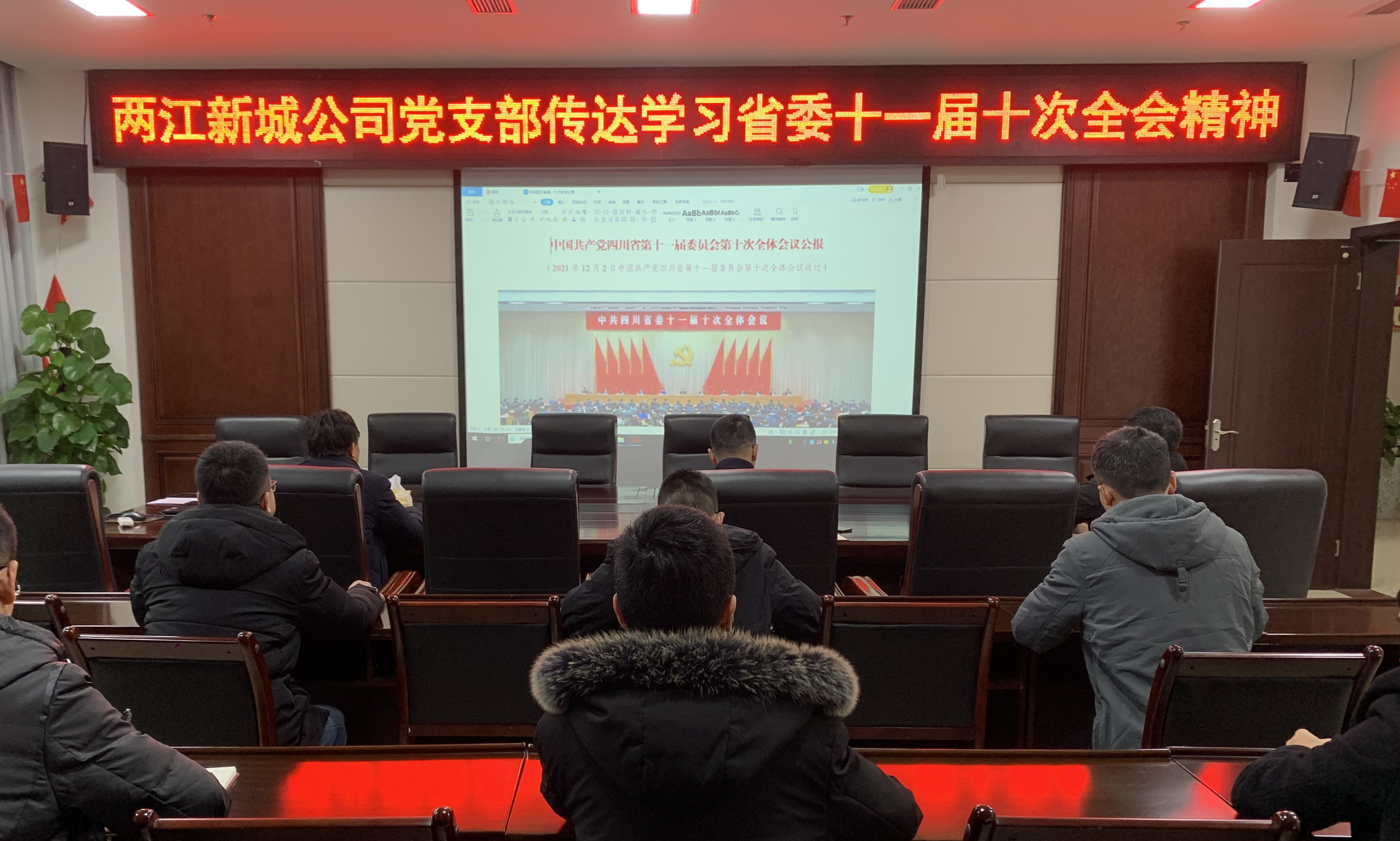 12月10日,兩江新城公司黨支部傳達(dá)學(xué)習(xí)省委十一屆十次全會(huì)精神,集中學(xué)習(xí)了《中共四川省委關(guān)于深入學(xué)習(xí)貫徹黨的十九屆六中全會(huì)精神鞏固黨史學(xué)習(xí)教育成果的決定》《中共四川省委關(guān)于以實(shí)現(xiàn)碳達(dá)峰碳中和目標(biāo)為引領(lǐng)推動(dòng)綠色低碳優(yōu)勢產(chǎn)業(yè)高質(zhì)量發(fā)展的決定》等文件。