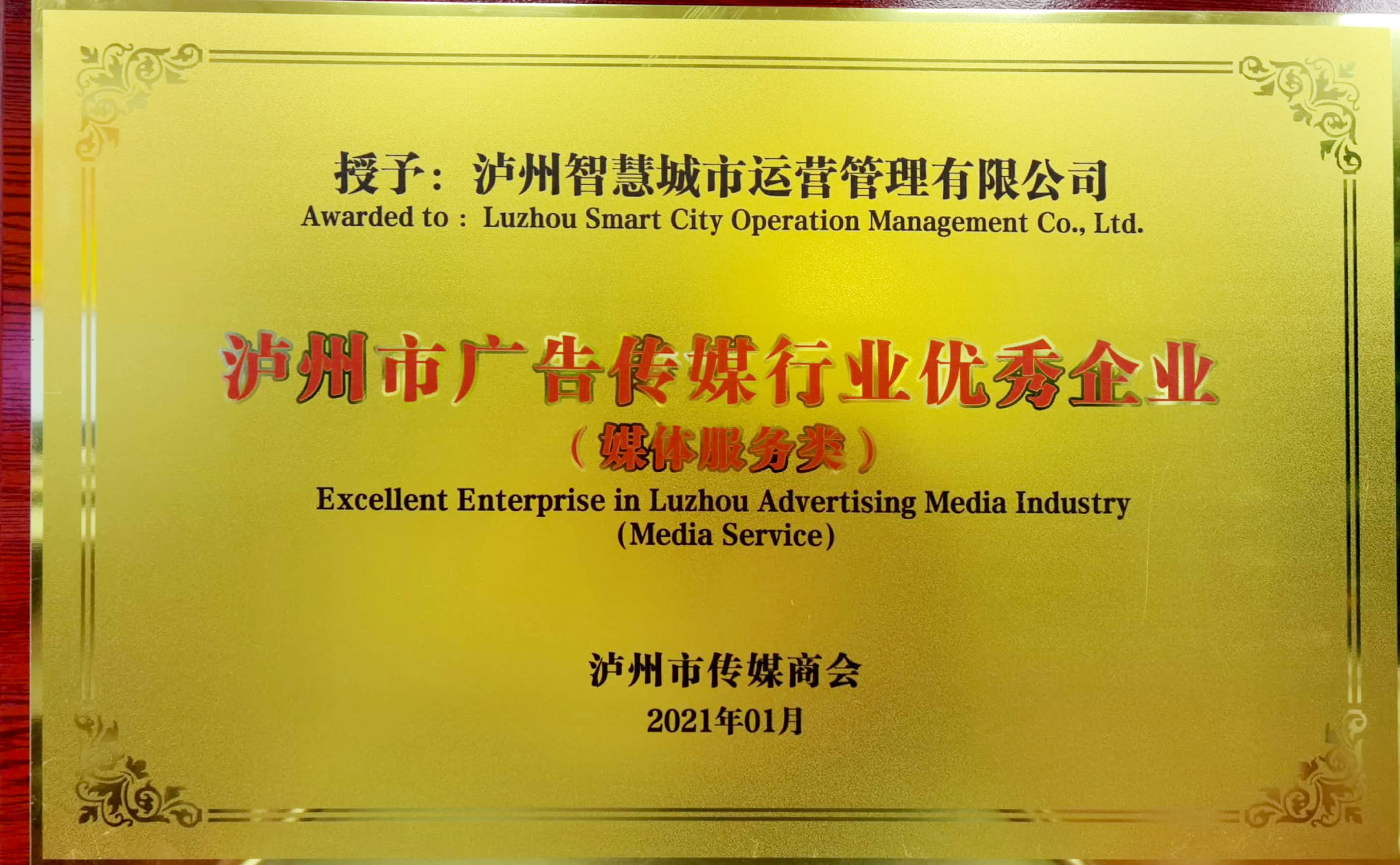 近日,瀘州城投集團(tuán)旗下瀘州智慧城市運(yùn)營管理有限公司獲市傳媒商會(huì)“常務(wù)副會(huì)長單位”榮譽(yù)稱號(hào),并獲評(píng)“瀘州市廣告?zhèn)髅叫袠I(yè)優(yōu)秀企業(yè)(媒體服務(wù)類)”。
