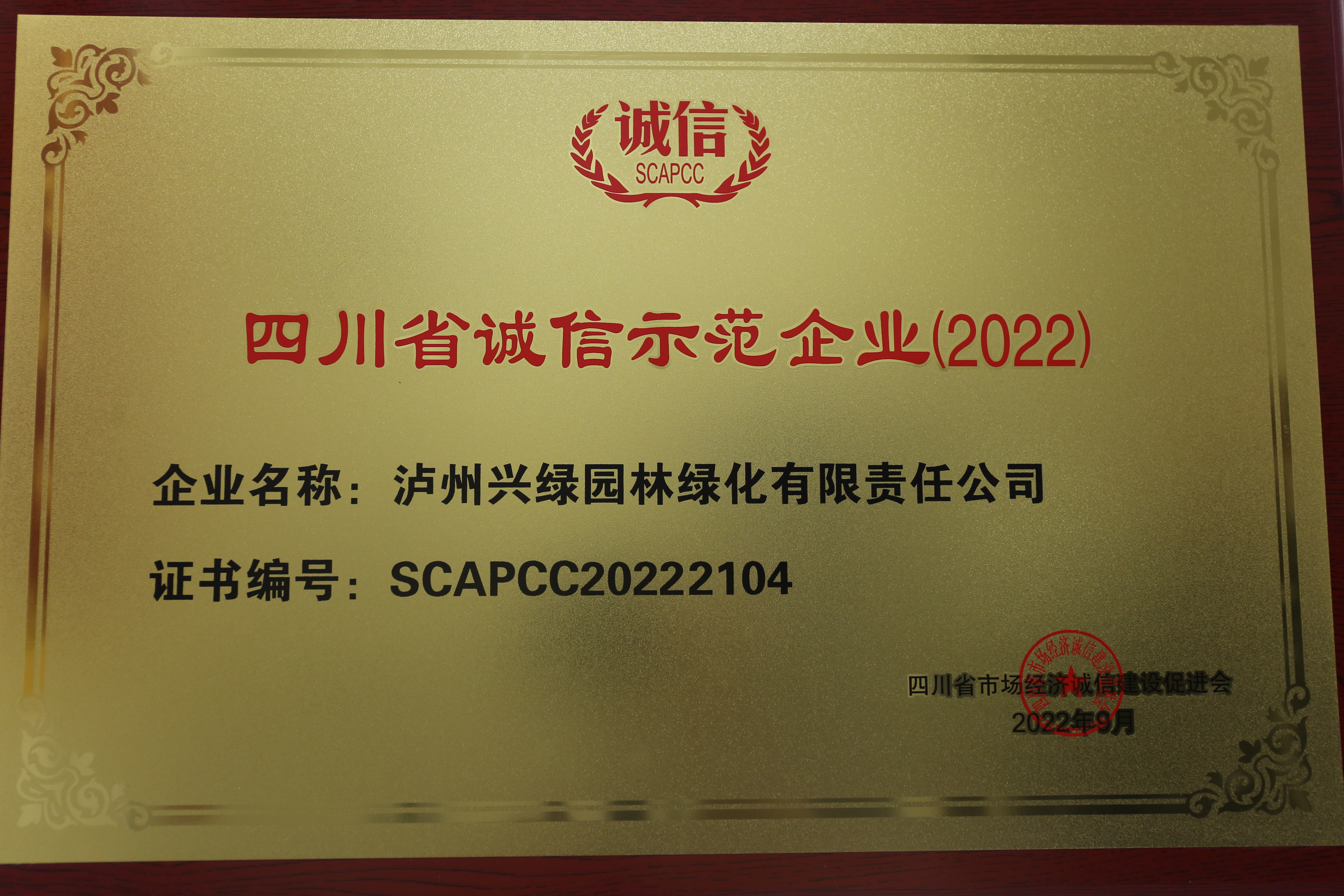 近日,四川省市場經(jīng)濟誠信建設促進會對外公布2022四川省誠信示范企業(yè)認定名單,瀘州城投集團下屬興綠園林公司經(jīng)過為期半年的層層篩選,最終脫穎而出,被授予2022年“四川省誠信示范企業(yè)”稱號,這也是興綠園林公司2021年以來連續(xù)兩年獲此殊榮。