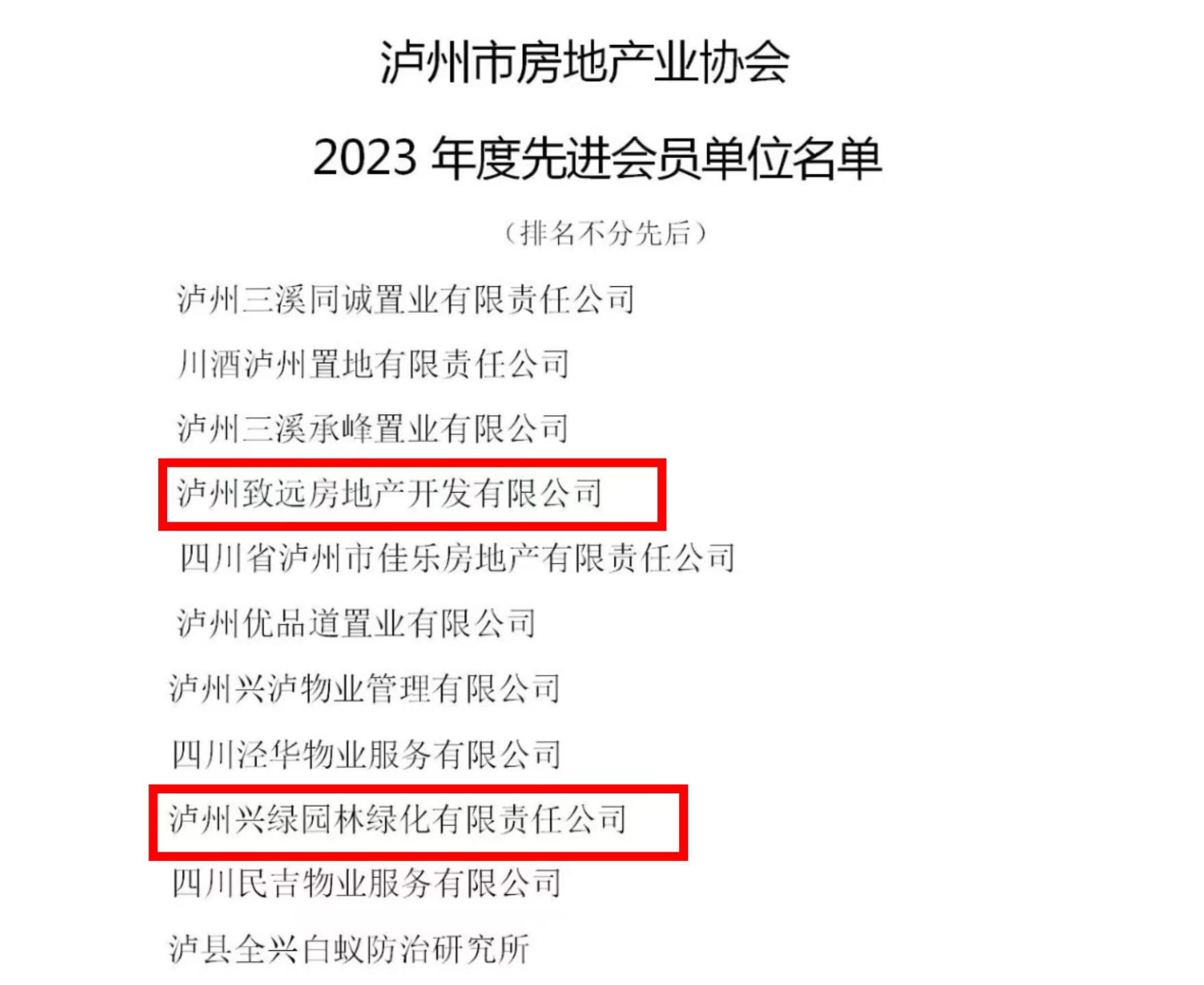 喜報(bào)!瀘州城投集團(tuán)下屬興綠園林公司、致遠(yuǎn)房地產(chǎn)公司榮獲瀘州市房地產(chǎn)業(yè)協(xié)會(huì)“2023年度先進(jìn)會(huì)員單位”稱(chēng)號(hào)