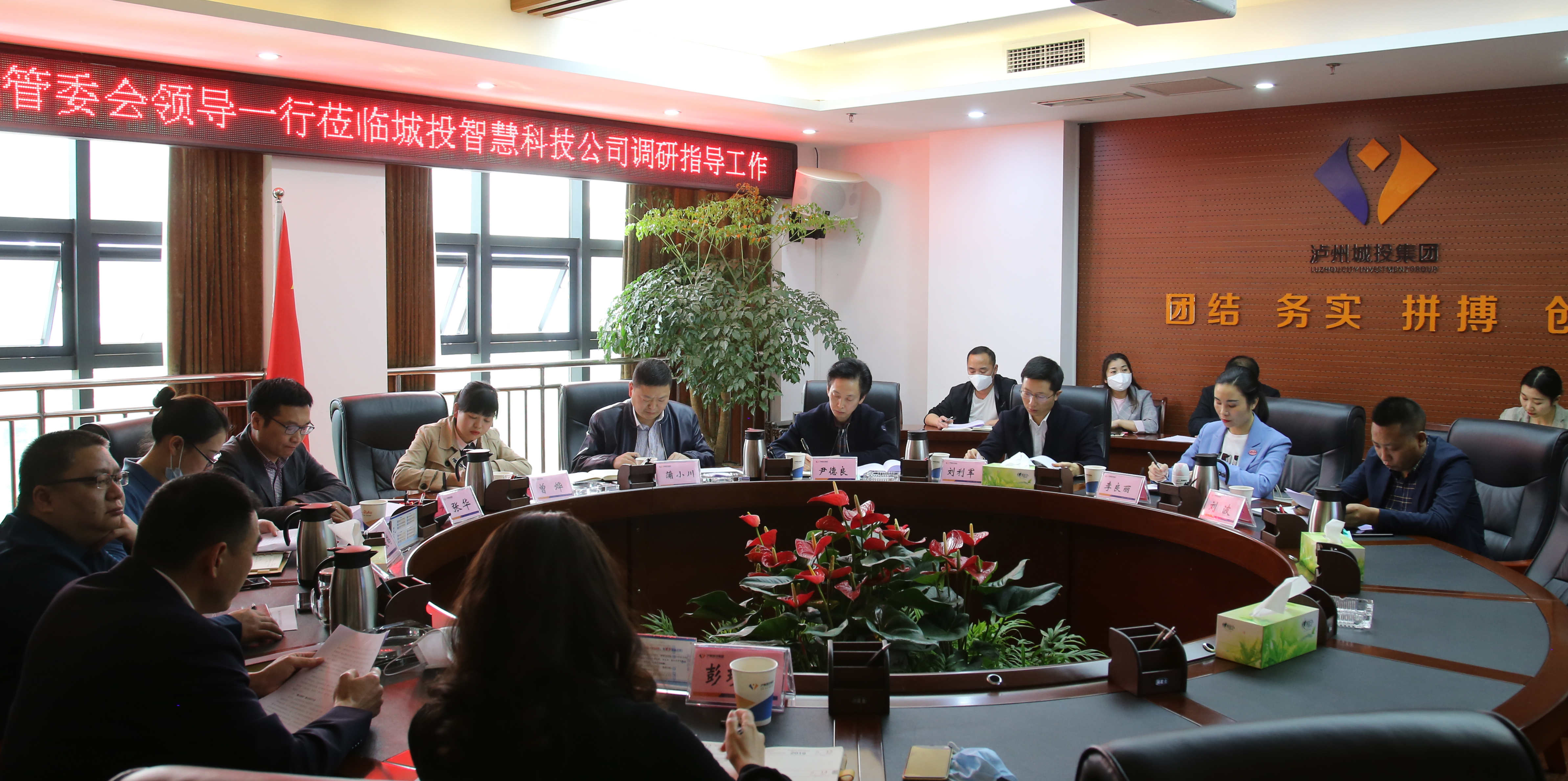 4月9日下午,兩江新城管委會主任尹德良,副主任劉利軍率黨政辦、項目科、財務(wù)科、總工辦負(fù)責(zé)人到城投智慧科技公司調(diào)研指導(dǎo)工作,城投集團總經(jīng)理陳亮、財務(wù)總監(jiān)吳良鴿陪同調(diào)研,智慧科技公司董事長孫科等班子成員參加會議。