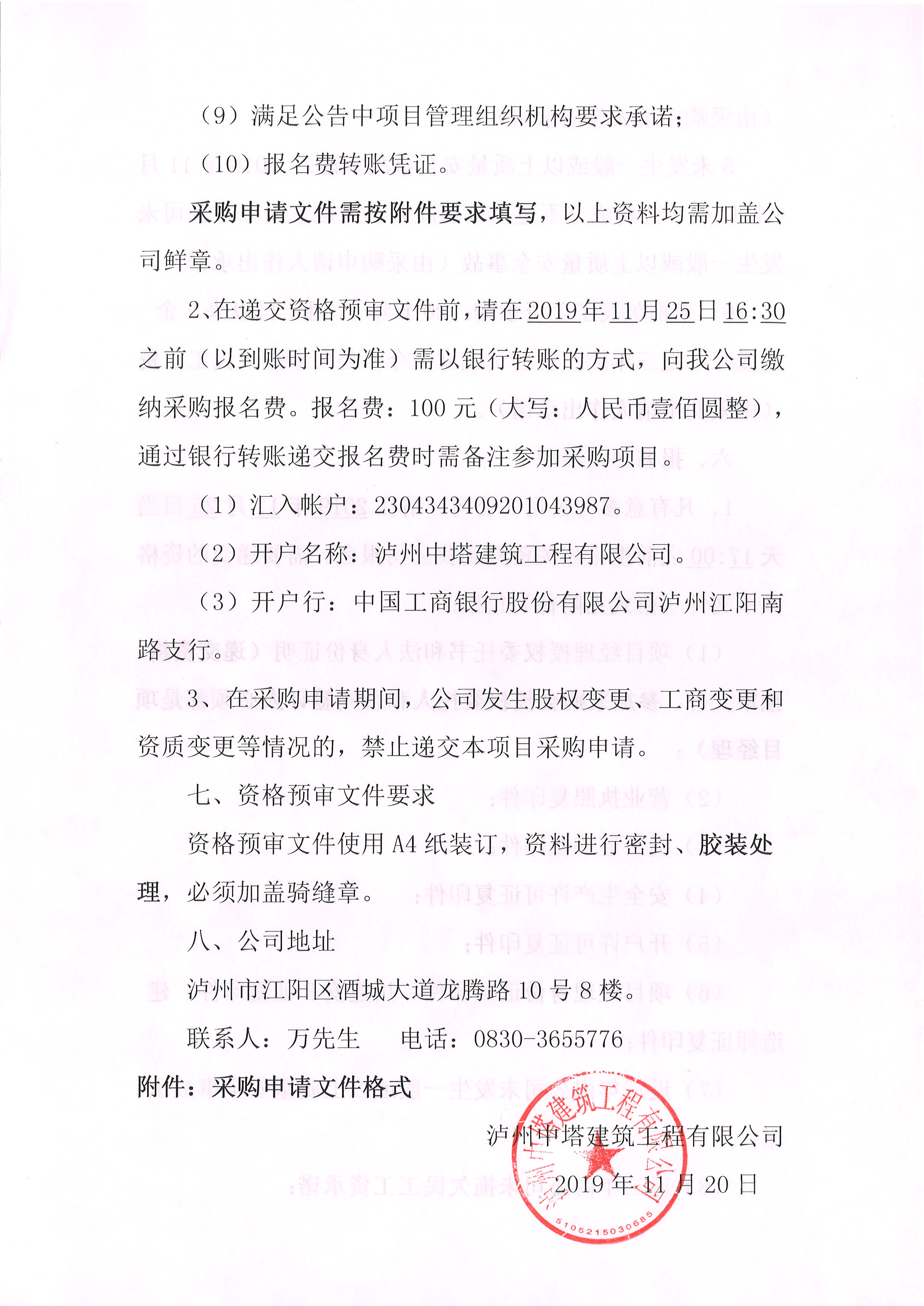 公開選取瀘州市臨港加油加氣站建設(shè)項目網(wǎng)架工程專業(yè)承包單位的公告
