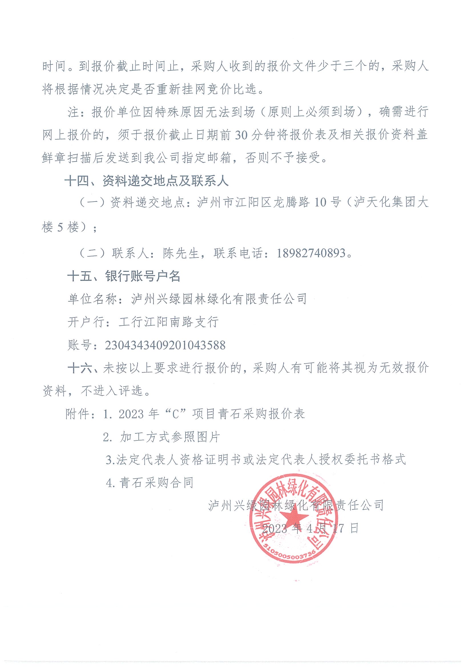 2023年“C”項目青石采購詢價公告